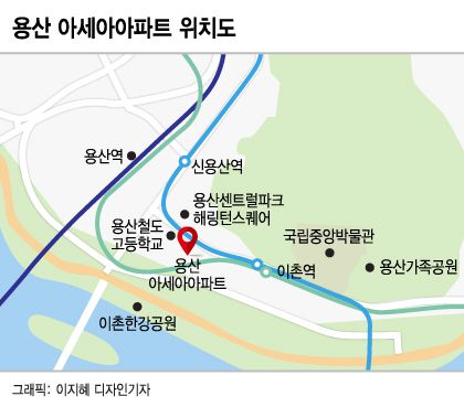 아세아아파트는 용산에서도 금싸라기 땅에 위치한다. 앞으로는 한강이 있고 뒤쪽으로는 한국판 센트럴파크로 불리는 용산민족공원이 있다. 도보 10분 거리에 용산역과, 신용산역, 이촌역 등을 이용할 수 있는 트리플역세권이다. 서울 요지에 위치하면서 일반분양 물량도 많아 청약 대기자들이 일찌감치 눈독을 들이고 있는 곳 중에 하나다.