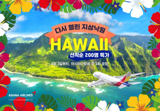 하와이는 관광, 쇼핑, 휴양 등을 모두 즐길 수 있는 인기 여행지다. 아시아나항공은 시장동향을 주시하며 오는 7월부터는 매일 1회로 증편 운항도 검토한다는 방침이다.
