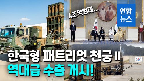 (서울=연합뉴스) 국산 무기 판매계약 건으로 사상 최대 규모인 4조 원 상당의 탄도탄 요격미사일 체계 '천궁-Ⅱ'가 아랍에미리트(UAE)에 수출됩니다.