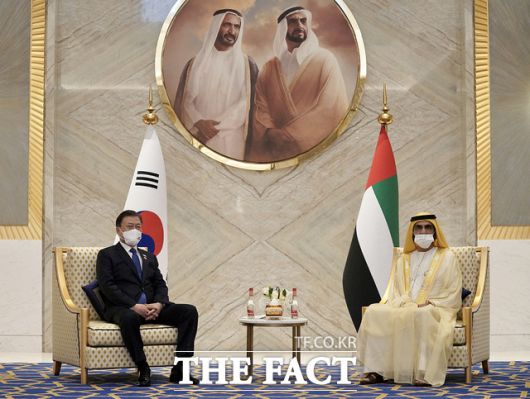 [더팩트ㅣ허주열 기자] 아랍에미리트(UAE)를 방문 중인 문재인 대통령은 16일 오후(현지시간) 두바이 엑스포 행사장 리더십관에서 모하메드 빈 라시드 알 막툼 UAE 부통령 겸 총리(두바이 통치자)와 회담을 갖고 '2030 부산 엑스포 유치 지지', '천궁Ⅱ(M-SAM2)' 계약 등 방산 협력을 포함한 양국 간 현안에 대해 심도 있는 논의를 가졌다.