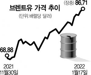 에너지 공급에 차질을 초래할 수 있는 우크라이나 정세 또한 국제 유가 상승 요인의 하나다. 러시아가 우크라이나를 공격할 가능성이 점점 커지는 상황이 유가를 자극하고 있다는 것이다.