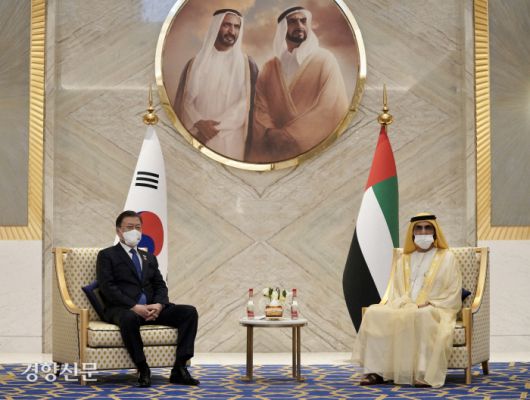 청와대는 전날 개최된 문 대통령과 셰이크 모하메드 빈 라시드 알 막툼 UAE 총리 겸 두바이 통치자 간의 회담이 한·UAE 정상회담 성격을 갖는다고 설명했다. 청와대 관계자는 “UAE 총리와의 회담 배석자가 부총리급 3명을 포함해 주요 각료 17명으로 상당히 많고 이례적”이라며 “정상회담으로 손색이 없다고 생각한다”고 말했다.