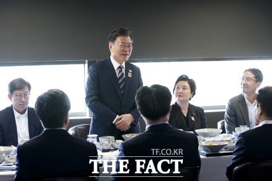 [더팩트ㅣ허주열 기자] 아랍에미리트(UAE)를 방문 중인 문재인 대통령은 17일 두바이에서 엑스포 한국관 관계자들과 오찬을 함께하며 노고를 격려했다.