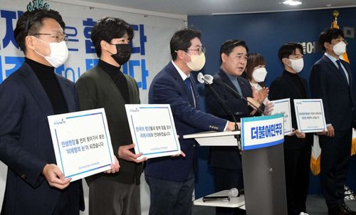 지난해 12월12일 서울 여의도 더불어민주당 당사에서 열린 다이너마이트 청년선대위 발대식에서 참여자들이 각오를 밝히고 있다. 국회사진기자단 |