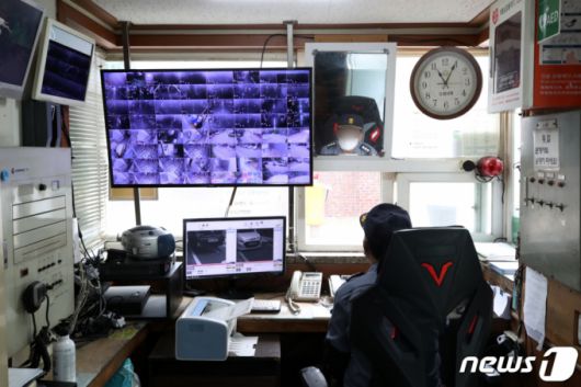(서울=뉴스1) 조태형 기자 = 서울시내 한 아파트 단지 경비 초소에서 경비원이 근무하고 있다. 2021.5.20/뉴스1 |