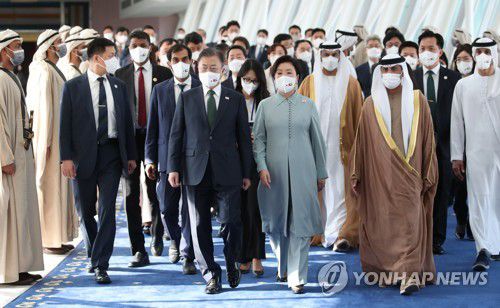 문 대통령은 "양국은 각별한 우정으로 국방, 방산, 보건 등 많은 분야에서 협력해왔다. 아크부대와 바라카 원전은 양국의 굳건한 연대와 신뢰를 상징한다"며 "서울대병원이 운영하고 있는 셰이크 칼리파 전문병원은 양국의 우정을 더 크게 키우고 있다"고 했다.