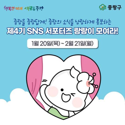 중랑구(구청장 류경기)가 지역 주민의 눈으로 구민들에게 다양하고 특색 있는 소식을 전하는 SNS 서포터즈 랑랑이와 우리동네통신원을 모집한다.