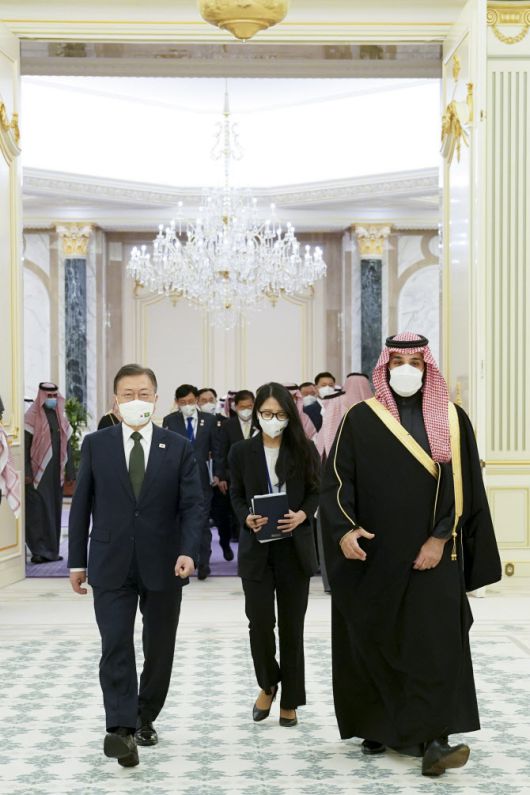 문 대통령은 사우디 정부가 추진 중인 ‘사우디 비전2030’ 정책을 높이 평가하고 ‘한-사우디 비전2030 위원회’를 통해 한국이 중점 협력국으로 참여해 양국이 지속가능한 성장을 위한 상생 협력의 중요한 기반이 되고 있다고 했다.