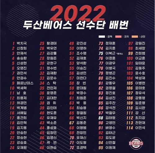 두산 베어스 2022년 선수단 등번호 |