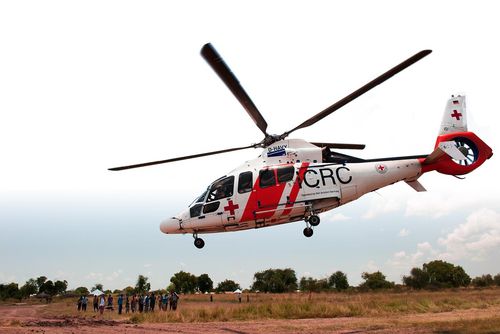구호활동 중인 국제적십자연맹 헬기 |