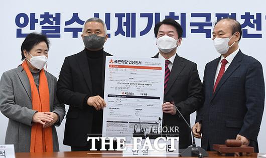 안철수 국민의당 대선후보(왼쪽 세번째)가 20일 오전 서울 여의도 국회에서 상임선대위원장으로 영입된 최진석 위원장의 입당식을 하고 있다. /국회=이선화 기자 |