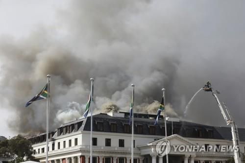 지난 3일 불타고 있는 남아공 국회 건물 |