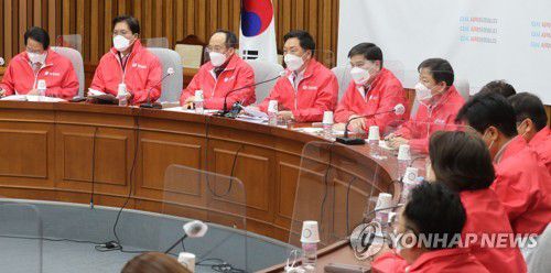 원내대책회의에서 발언하는 김기현 원내대표 |