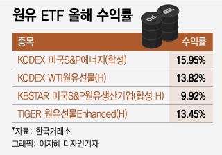 미래에셋자산운용의 'TIGER 원유선물Enhanced(H)'와 KB자산운용의 'KBSTAR 미국S&P원유생산기업(합성 H)'도 올해 들어 각각 13.45%, 9.92%의 수익률을 냈다.