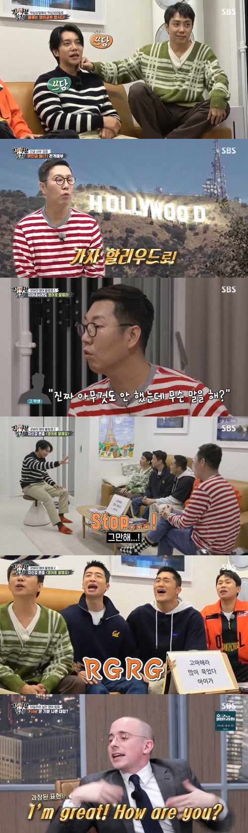 이승기는 영어 공부를 다시 결심한 이유가 있냐고 물었다. 은지원은 "너도 알다시피 나는 후회하는 게 없다. 그런데 4년 유학하면서 영어를 제대로 안 한 게 제일 후회된다"고 말했다. 영어는 어느 나라를 가더라도 쓸 수 있기 때문이다. 이승기는 "컴플레인하려고 영어를 좀 하고 싶다"고 말해 웃음을 줬다. 양세형은 "영어를 못 하니까 외국에 호텔 갔을 때도 수건 같은 걸 또 달라고 못해서 말려서 쓰고 그랬다"고 말했다.