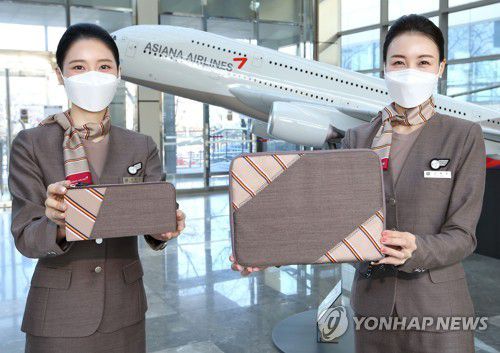 (서울=연합뉴스) 최평천 기자 = 아시아나항공[020560]은 폐기되는 유니폼을 재활용해 11인치 태블릿 파우치로 제작했다고 24일 밝혔다.