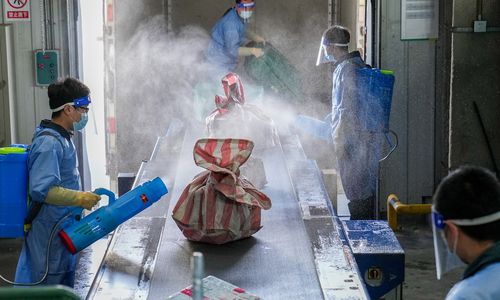 (베이징=연합뉴스) 한종구 특파원 = 중국이 국제우편발 코로나19 변이 오미크론 유입 가능성을 제기한 뒤 국제우편물 방역을 강화하고 있다.