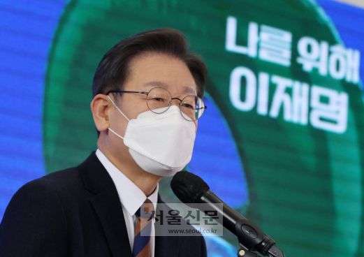 이재명 더불어민주당 대선 후보가 24일 오전 경기 용인 포은아트홀에서 경기도 정책 공약을 발표하고 있다. 이 후보는 이 자리에서 GTX 신규노선 추가 등 교통편을 확대해 수도권 30분대 생활권 조성과 오래된 신도시는 특별법을 만들어 발전시키겠다고 밝혔다. 2022. 1. 24 김명국 선임기자 |