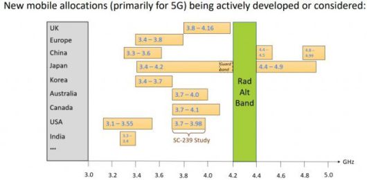 그런데 RA는 일종의 전파이기에 사용하는 주파수 대역대가 있습니다. 4.2~4.4㎓z(기가헤르츠)입니다. 이는 전 세계 항공기가 공통으로 사용하는 주파수 대역대입니다.