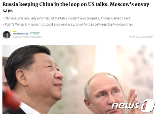 (서울=뉴스1) 박형기 기자 = 러시아가 우크라이나 상황을 중국에 실시간으로 통보하는 방법으로 미러 관계에 중국을 끌어들이고 있다고 홍콩의 사우스차이나모닝포스트(SCMP)가 26일 보도했다.