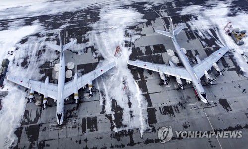 러시아 공군기지서 출격 대기하는 TU-95 전략폭격기 |