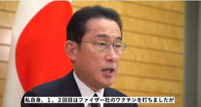 (도쿄=연합뉴스) 박세진 특파원 = 기시다 후미오(岸田文雄) 일본 총리가 26일 코로나19 백신 종류를 가리지 말고 3차 접종을 받아달라고 호소하는 동영상 메시지를 띄웠다.