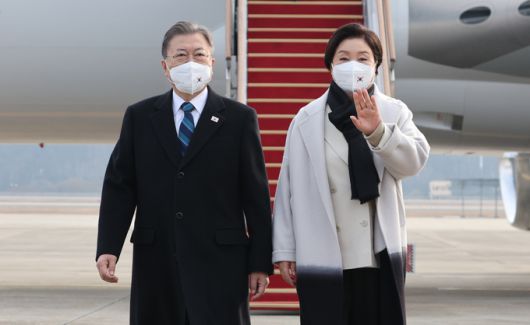아랍에미리트(UAE), 사우디아라비아, 이집트 등 중동 3개국 순방을 마친 문재인 대통령과 김정숙 여사가 22일 오전 성남 서울공항에 도착,공군 1호기에서 내려 이동하고 있다. 연합뉴스 |