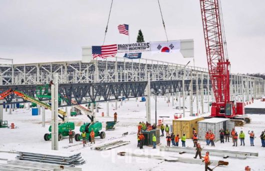 LG에너지솔루션과 미국 완성차 업체인 GM과의 합작법인인 ‘얼티엄셀즈’의 미국 오하이오주 전기차 배터리 공장건설 모습.(사진=LG에너지솔루션) |