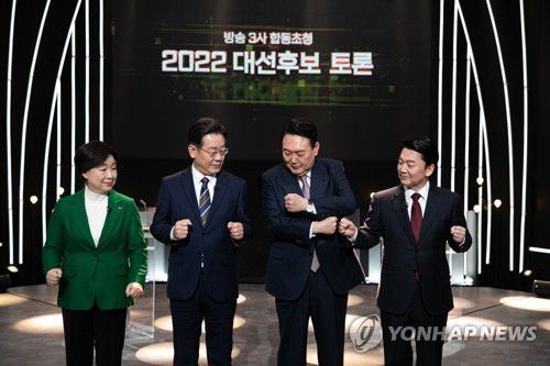 후보들은 토론을 끝낸 뒤 코로나19 상황을 고려해 '주먹' 악수를 하는 것으로 인사를 마무리했다.