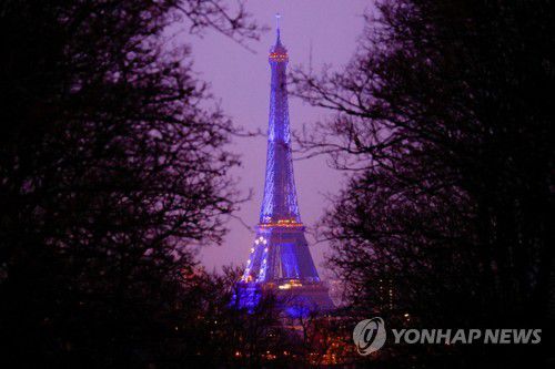 파랗게 빛나는 프랑스 파리 에펠탑 |