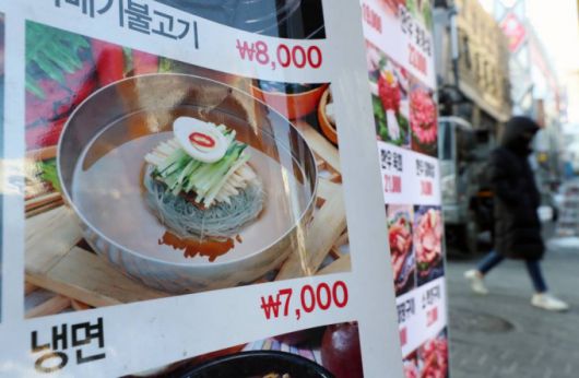 [서울=뉴시스] 고승민 기자 = 3일 서울 명동의 음식점 메뉴 입간판 모습. 2022.02.03. |