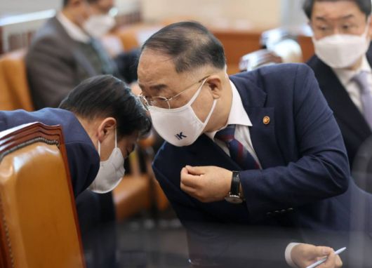 홍남기 부총리는 "저도 주어진 미션 범위 내에서 최대한 재정과 지출을 효율적으로 하고 필요한 부분은 재정 지원도 해야 한다고 생각한다"며 "물론 국회와 견해 차이가 다른 것은 인정하나 무조건 재정을 아끼고 재정 건전성을 확보하려는 차원은 아니다"라고 말했다.