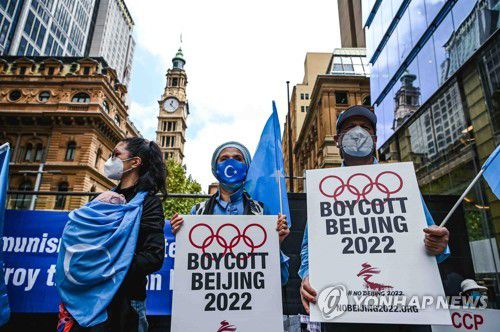 호주 시드니에서 열린 베이징동계올림픽 반대 시위 |