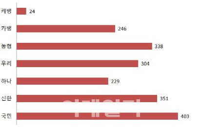 7곳 가운데 지난해 민원이 가장 많은 곳은 국민은행으로 403건을 기록했다. 이어 △신한(351건) △농협(338건) △우리(304건) △하나(229건)은행 △카카오뱅크(246건) △케이뱅크(24건) 등이 뒤를 이었다.