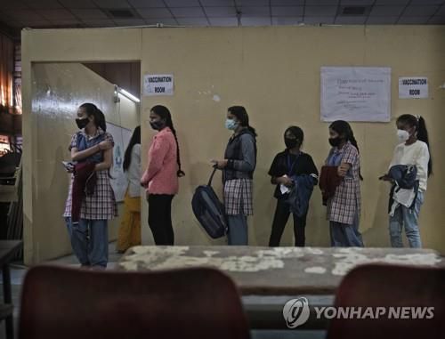 인도 뉴델리의 한 학교에서 코로나19 백신을 맞는 학생. |