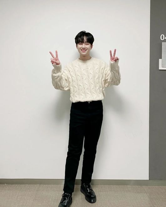 공개된 사진은 흰색 니트에 블랙 바지를 입은 이찬원이 양 손으로 브이를 그리며 포즈를 취하고 있는 모습. 이찬원의 작은 얼굴과 귀여운 눈웃음이 보는 팬들의 시선을 사로잡았다.