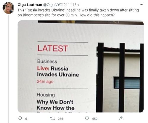 로트만은 이를 지켜보다가 트위터에 "'러시아, 우크라이나 침공' 제목의 기사가 약 30분 이상 게재됐다가 결국 내려갔다. 어떻게 이런 일이 있을 수 있나"라고 썼다.