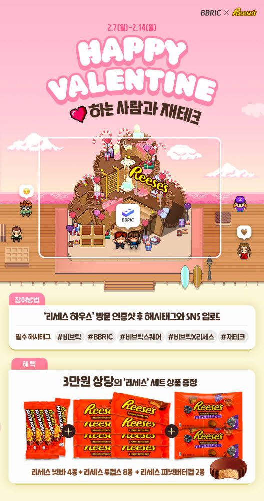 세종텔레콤은 부동산 간편 투자 앱 '비브릭(BBRIC)' 게더타운 기반 메타버스 팝업스토어 '비브릭스퀘어'에서 농심과 제휴한 발렌타인데이 이벤트를 진행한다.