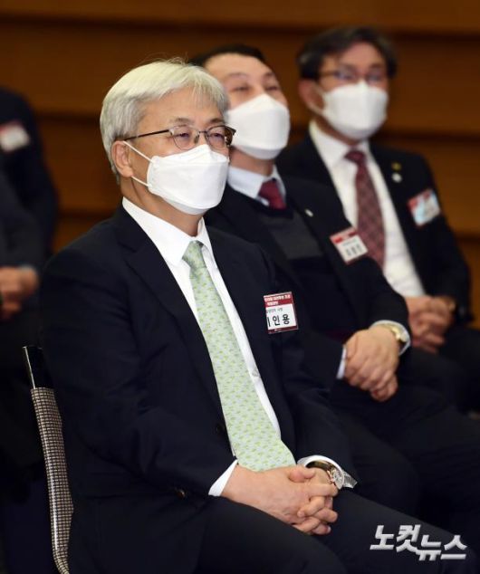 이인용 삼성전자 사장이 7일 오후 서울 중구 대한상공회의소 국제회의장에서 열린 대선후보 초청 특별강연에 참석해 윤석열 국민의힘 대선 후보의 강연을 듣고 있다.