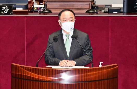 홍남기 경제부총리 겸 기획재정부 장관이 7일 오전 국회에서 열린 예산결산특별위원회 전체회의에서 추가경정예산안에 관한 제안설명을 하고 있다. (사진=연합뉴스) |