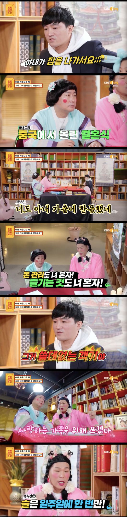 서재일씨는 "아내가 집을 나갔다"며 답답함을 호소했다. 이수근은 "표정 보니 그럴 줄 알았다"며 "아내가 나간지 얼마나 됐냐"고 물었다.