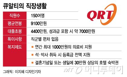 전직원 평균연봉 9100만원. 연간 의료비 1000만원까지 지원. 설립 8년차 벤처기업 큐알티의 이야기다. 큐알티는 업계 최고수준의 파격적 처우를 내세우며 관련 인재들을 빨아들이고 있다.
