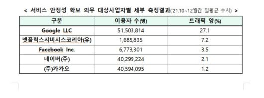 다만, 트래픽 량은 넷플릭스가 최대인 프랑스와 달리 우리나라에서는 구글이 27.1%(지난해 10~12월간 일평균 수치 기준)로 최대였다.