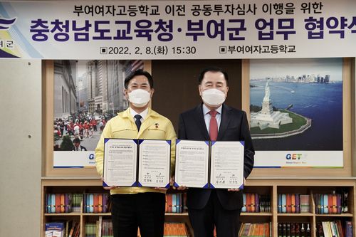 두 기관은 부여여고 단독 이전 사업이 교육부·행정안전부 공동투자심사에서 조건부 승인되면서 부대의견으로 제시된 '교부금 기준을 반영한 사업비 축소'와 '인근 문화예술교육 종합타운과 앞으로의 학교 통합 등을 고려한 설계 추진'을 위해 협력하기로 했다.