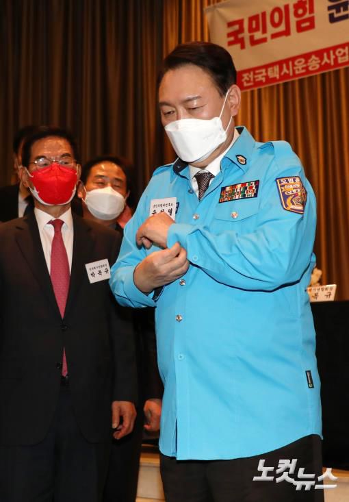 윤석열 국민의힘 대선 후보가 8일 오후 서울 송파구 교통회관에서 열린 '힘내라 택시! 소통의 날' 정책간담회에서 기사제복을 입고 있다.※CBS노컷뉴스는 여러분의 제보로 함께 세상을 바꿉니다. 각종 비리와 부당대우, 사건사고와 미담 등 모든 얘깃거리를 알려주세요.이메일 : nocutnews@cbs.co.kr카카오톡 : @노컷뉴스저작권자 © CBS 노컷뉴스 무단전재 및 재배포 금지