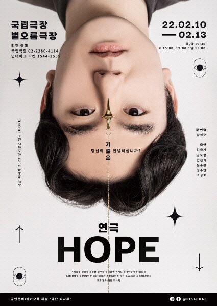 [이데일리 이윤정 기자] 극단 피사체의 연극 ‘HOPE’가 오는 10일 막을 올리고 13일까지 국립극장 별오름극장에서 공연한다.