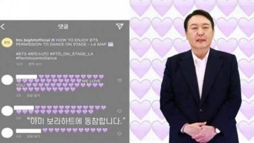 이에 '아미'는 BTS를 상징하는 보라색의 하트 댓글 달기에 나섰는데, 윤 후보 측이 이를 응원하겠다는 메시지를 보낸 것이다.