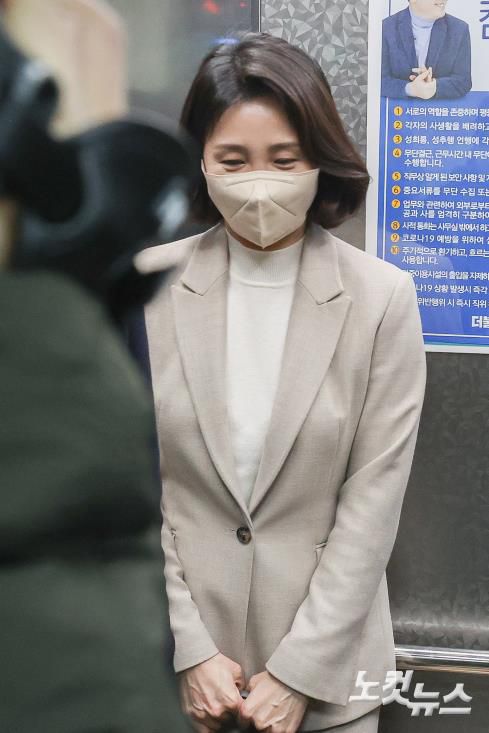 이재명 더불어민주당 대선 후보의 부인 김혜경씨가 9일 서울 여의도 중앙당사에서 기자회견을 하기 위해 들어서고 있다.