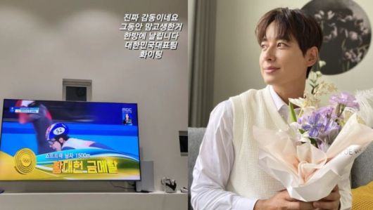 이민정 역시 자신의 인스타그램에 “금메달. 쇼트트랙 황대헌, 감동적입니다”라며 경기 장면을 찍어 올렸다.