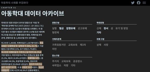 특별취재팀은 어린이날 제정 100주년을 앞두고 아동학대 범죄 실체를 밝히고자 변호사, 학계, 데이터 분석가와 함께 범행 내용과 형량, 사건장소, 피고인 유형, 학대 이유, 양형의 이유 등 20여 가지 항목으로 판결문을 분류했다.